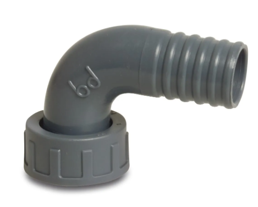 Einzigartig an diesem PP-Bogen ist die Kombination aus einer Seite mit lose Überwurfmutter mit IG und einer zweiten Seite mit Schlauchtülle. Der Überwurf mit IG ermöglicht eine einfache und sichere Verbindung mit anderen Rohrleitungssystemen oder Armaturen. Die Schlauchtülle ist speziell dafür ausgelegt, eine sichere Verbindung mit Schläuchen herzustellen, indem sie einen festen Halt und eine zuverlässige Abdichtung gewährleistet.