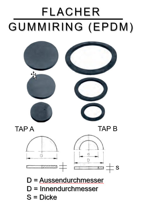 Flacher Gummiring (EPDM) für Endkappe und Handform-Kupplungen: