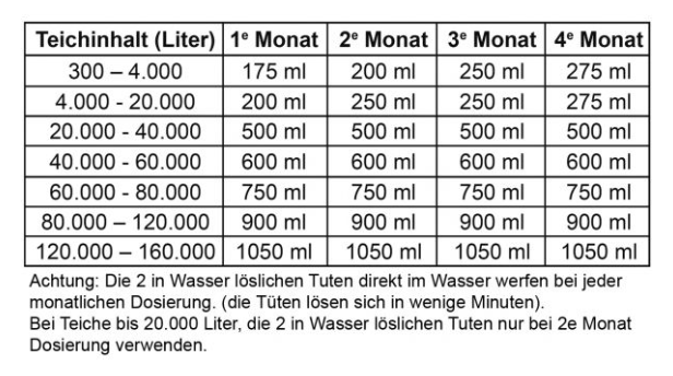- Sorgt für andauernde biologische Aktivität, selbst bei Wassertemperaturen unter 12°C.
