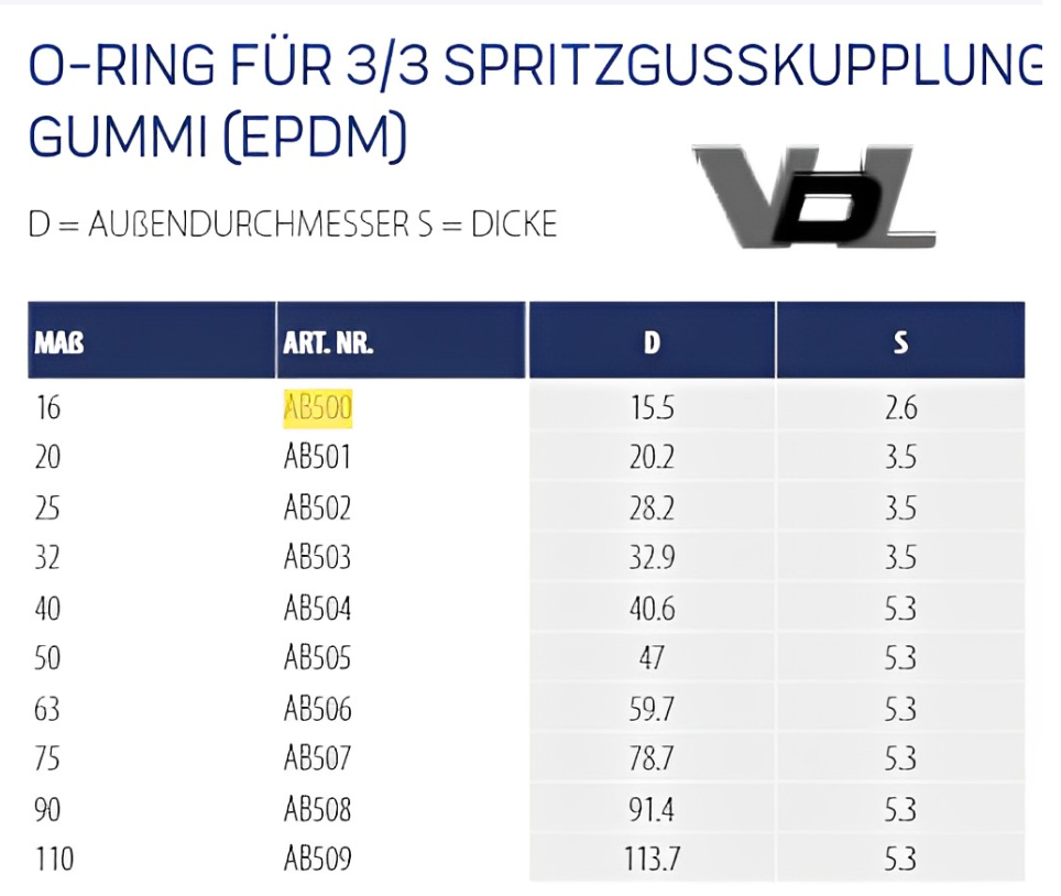 Varianten O-Ring für 3/3 Spritzgusskupplung: