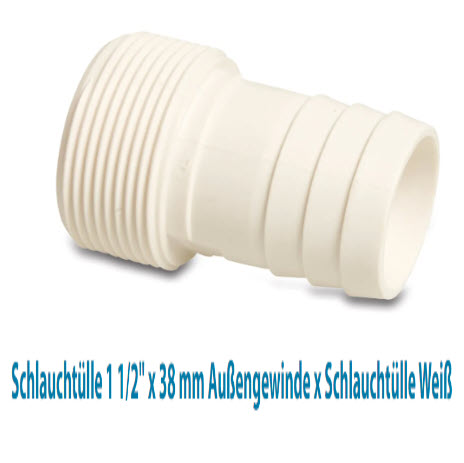 Schlauchtülle 1 1/2" x 38 mm Außengewinde x Schlauchtülle weiß